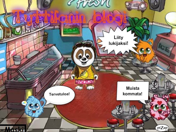 VastaaPoistaMoih,tota oisin tilaamassa yläkuvaa,siinä olis woodyjä jokka sanois esim.Muista kommata!Emme suvaitse kiroilua!Kerro muillekkin blogistani tms.Ja käviskö taustaks Jätskibaari??